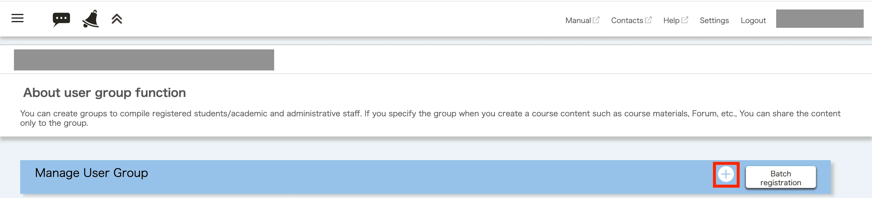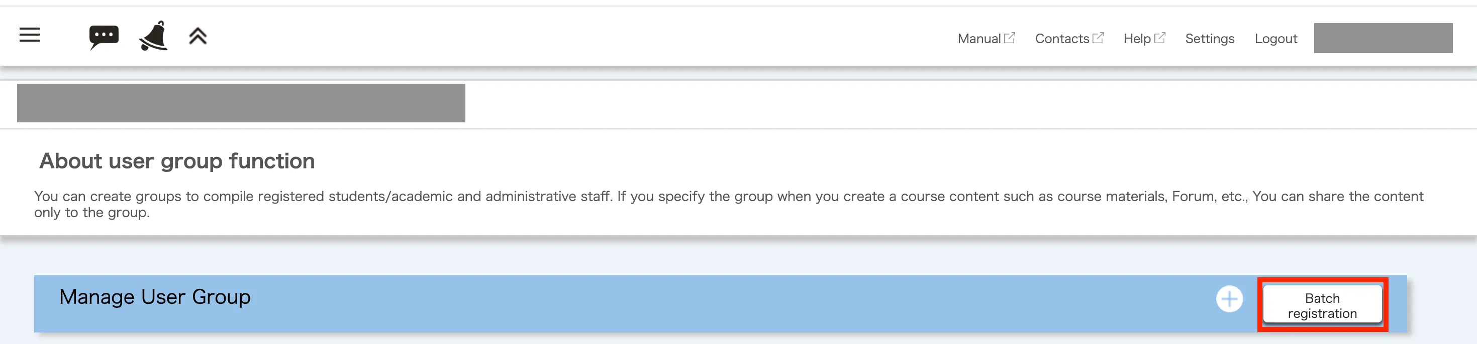 Click on the “Batch registration” button on the right of “Manage User Group”.