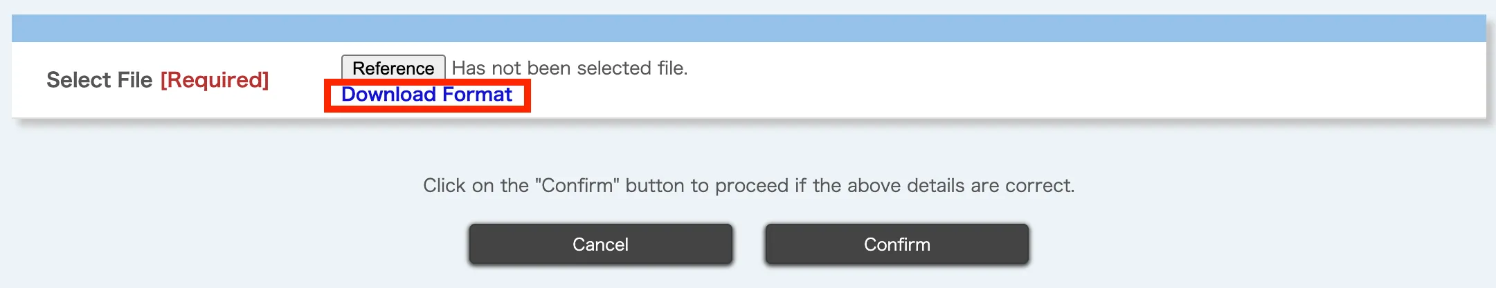 After selecting the Excel file you entered by clicking on the “Reference” button on the UTOL screen, click the “Confirm” button to proceed.