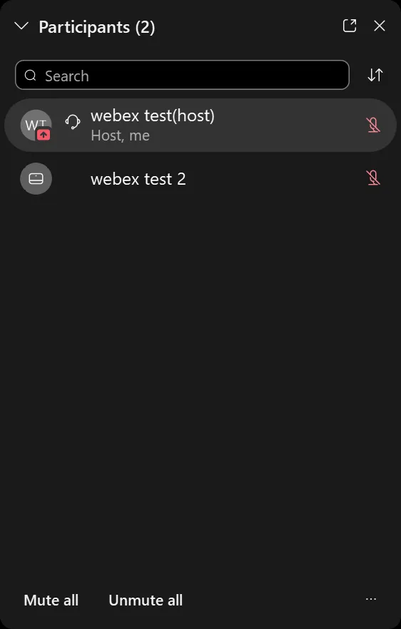 • Microphone icon: Participants with a red microphone icon have their microphones muted. The host can also mute participants’ microphones. In the above figure, the microphone of the test attendee is muted.