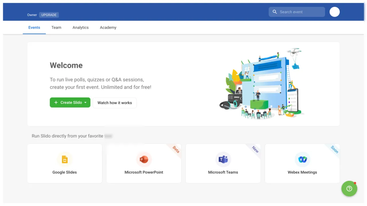 自身でイベントを主催する場合は,Slidoへのログインが必要です.イベントに参加するだけであれば,この手順は必要ありません.