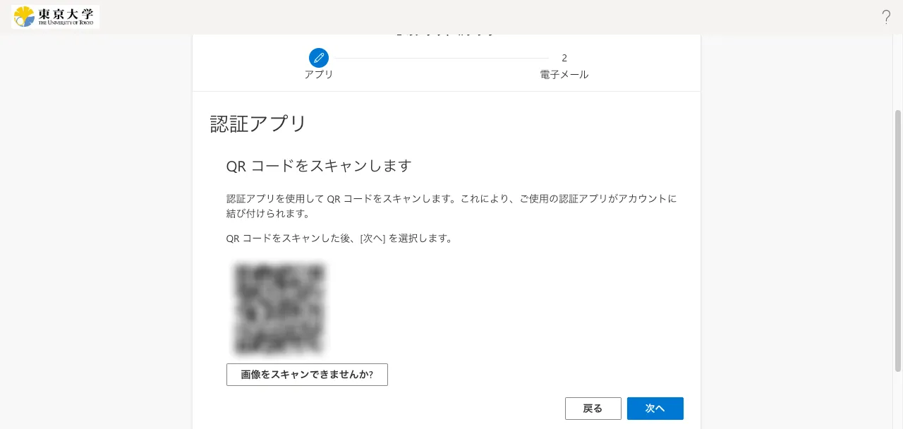 - 画面の指示に従って進めて,QRコードを表示させてください.