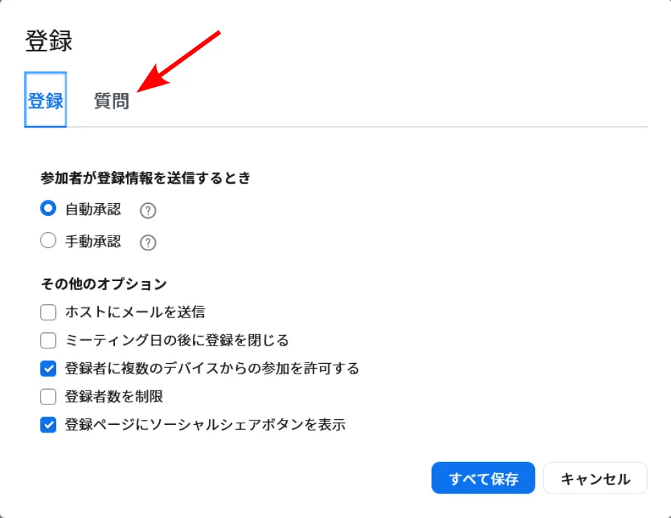 1. 表示される画面で,「質問」タブを選択してください.